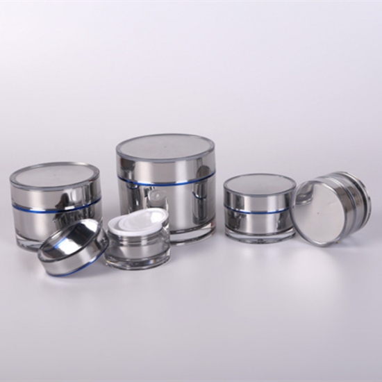 Silver Acrylic Double Wall Cream Jar Face Cream Moisturizer PMMA Jar Wide Mouth Container