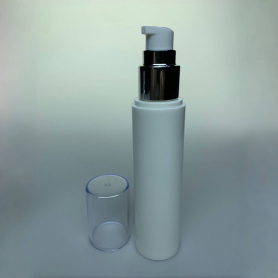 15ml 30ml 50ml White PP Airless Bottles with Screw on Silver Pump and Clear PC Cap