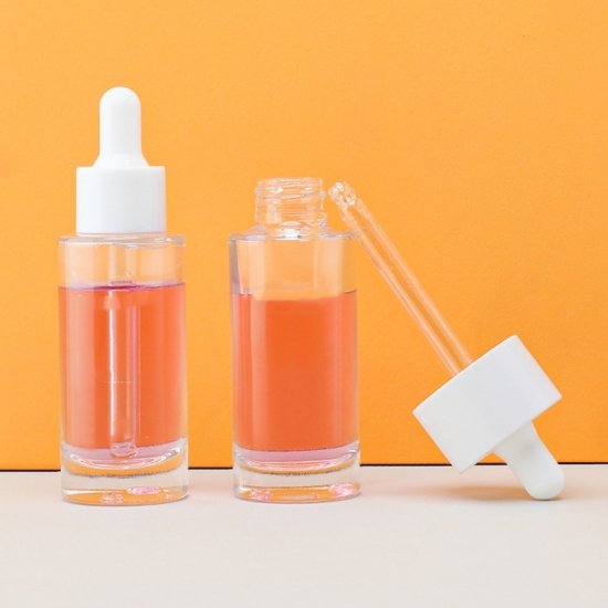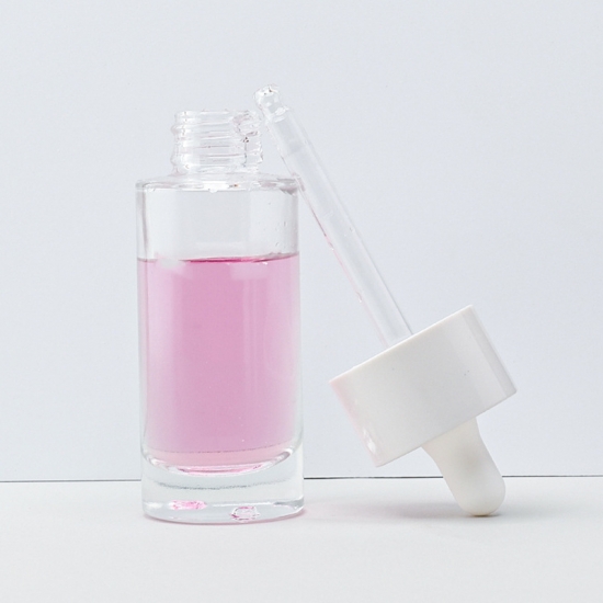 30ml 1oz Clear Round Glass Bottles with Dropper Press Pump