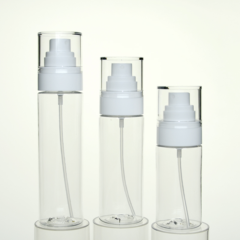Item: Empty 50ml 80ml 100ml Skin Care Lotion Toner Bottle PET Plastic Cylindrical Bottle with Pump Spray