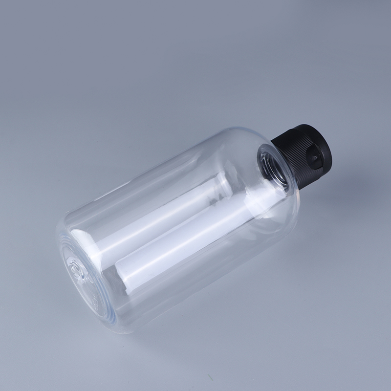 Item: 250ml 8oz clear boston round PET plastic bottle with flip cap